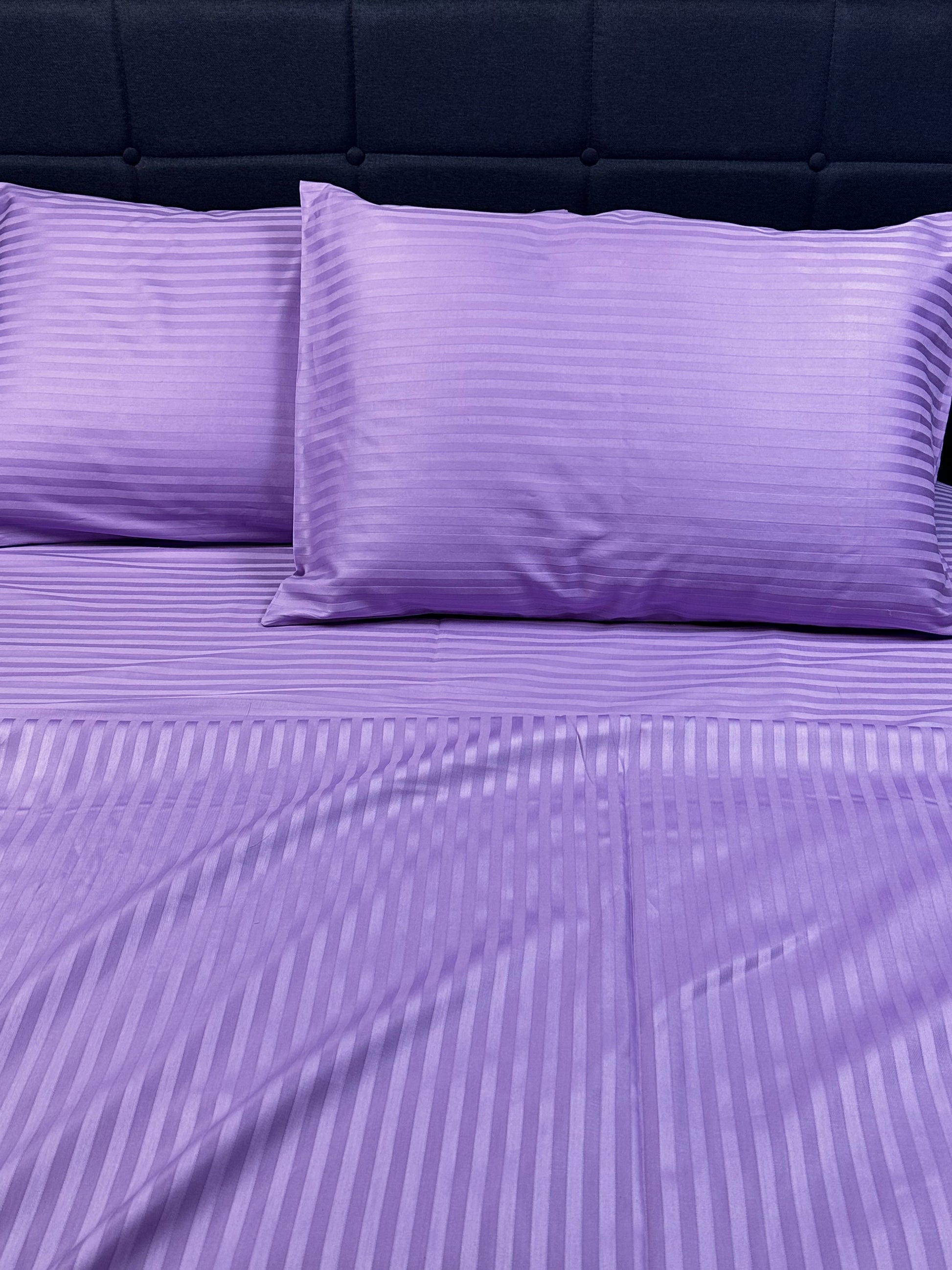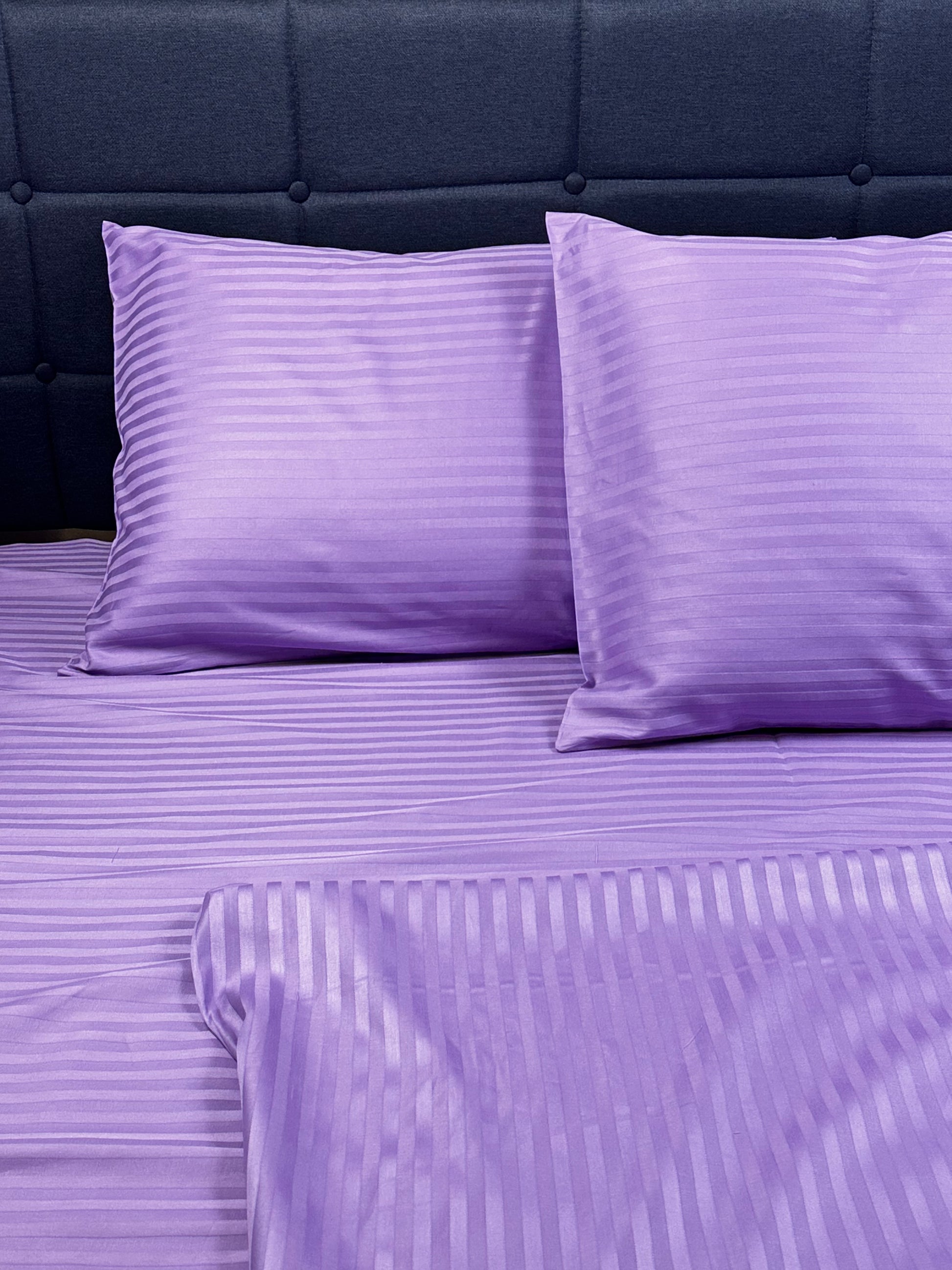 Crafted from premium Turkish cotton in a refined stripe sateen weave, this bedding set offers a silky-smooth touch, breathable comfort, and timeless elegance. The lavender stripe design adds a subtle charm that complements both modern and classic interiors.